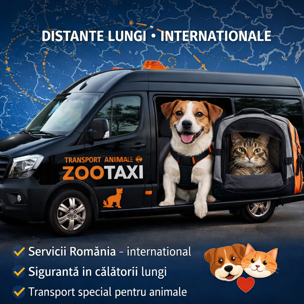 ZOOTAXI oferă servicii profesionale de transport pentru animale de companie, atât în România, cât și internațional, în toată Europa. Ne ocupăm de fiecare călătorie cu grijă, răbdare și atenție la detalii, astfel încât animăluțul tău să ajungă în siguranță și confort la destinație. Suntem specializați în curse pe distanțe lungi, cu opriri planificate pentru apă, hrană și pauze de relaxare. Asigurăm preluare și livrare din ușă în ușă, la cerere, și comunicăm permanent cu proprietarii pe durata transportului.